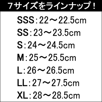サイズ SSS:22〜22.5cm/SS:23〜23.5cm/S:24〜24.5cm/M:25〜25.5cm L:26〜26.5cm/LL:27〜27.5cm/XL:28〜28.5cm 素材 1層目:綿とナイロンの混紡 /2層目:低反発特殊ウレタン発泡/3層目:衝撃吸収ポリウレタン発泡(軟質) 4層目:衝撃吸収ポリウレタン発泡(硬質) 備考 中国製