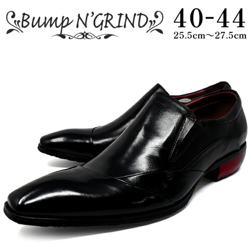 Bump N' GRIND バンプ アンド グラインド メンズ ビジネスシューズ 本革 ロングノーズ スクエアトゥ スリッポン 革靴 紳士靴 ブラック BG-6051 BLACK ドレスシューズ 送料無料 就活 靴 くつ 父の日 ギフト